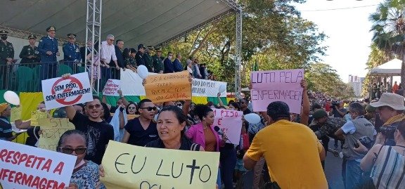 No desfile de 7 de Setembro houve também protesto. Professores, enfermeiros e outras categorias se manifestaram no Grito dos Excluídos. Os enfermeiros protestaram pela suspensão do pagamento do piso de enfermagem pelo ministro Luiz Roberto Barroso, do STF. Cartazes alertavam para uma possível paralisação da categoria.