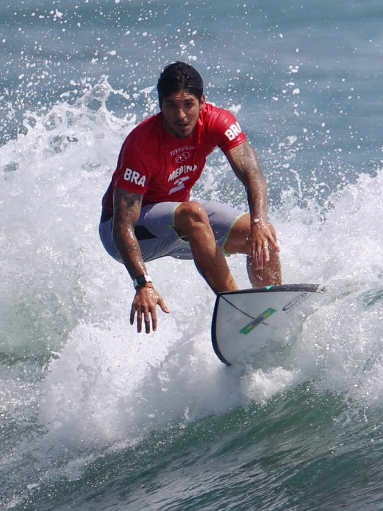 Gabriel Medina está nas quartas de final do surfe masculino nas Olimpíadas de Tóquio. O brasileiro venceu sua bateria nas oitavas contra o australiano Julian Wilson nesta segunda-feira (26), na praia de Tsurigasaki, em Ichinomiya.