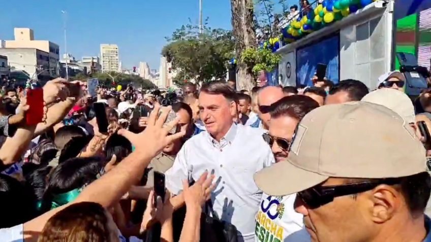 Bolsonaro vai à Marcha para Jesus e exalta pauta de costumes 9 de julho de 2022 O presidente Jair Bolsonaro (PL) disse neste sábado (9.jul.2022), durante a Marcha para Jesus, em São Paulo, que é contra o aborto, a legalização das